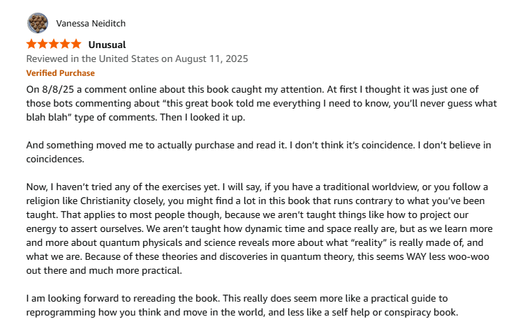 “This isn’t one of those books you read and forget. It lingers. The energy, the ideas, the way it makes you question yourself I’ve never had a book stick with me like this one.”